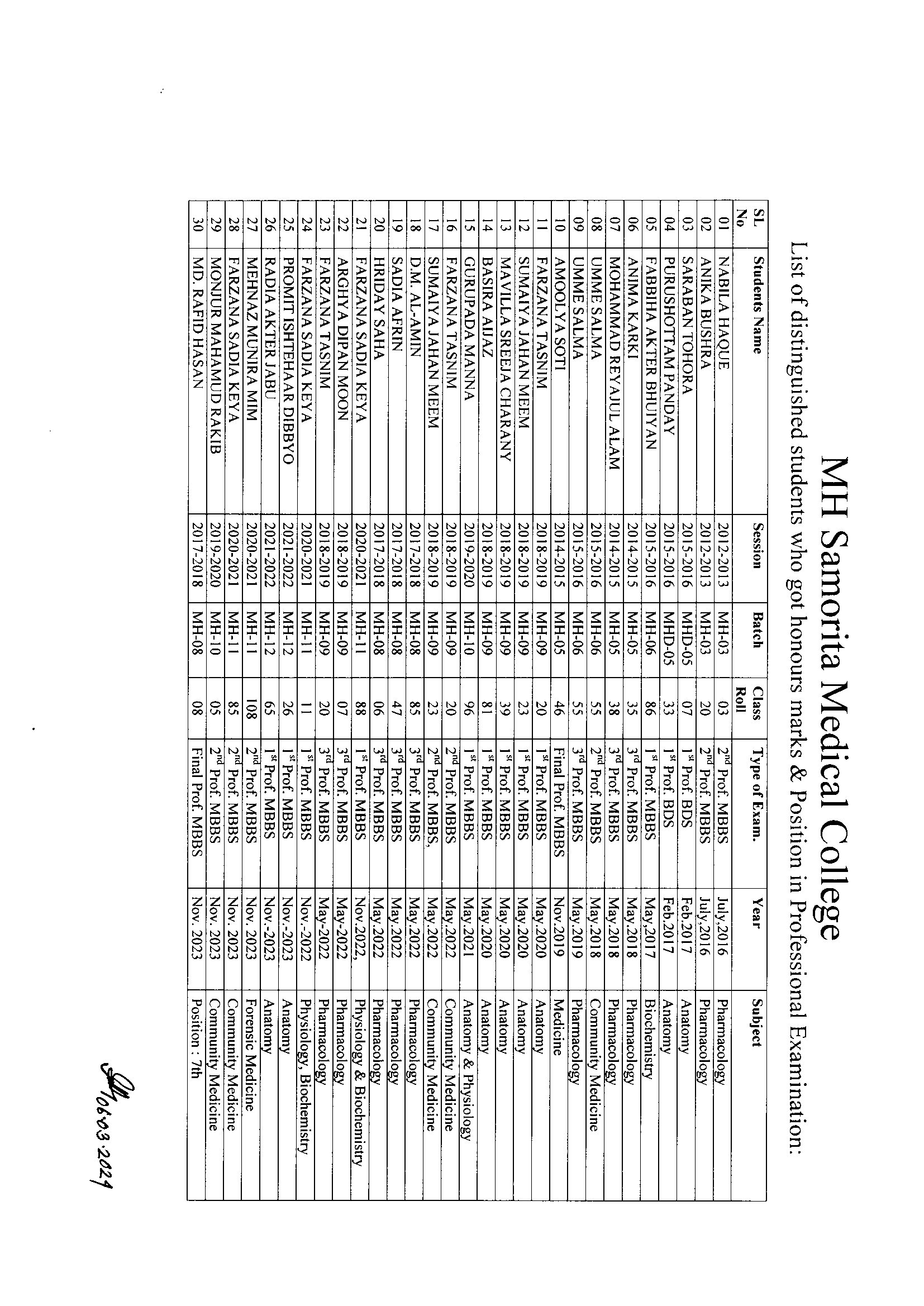 Admission to the MH Samorita Medical College is through 1st year. Admission is based on the merit list position acquired in admission test conducted by the DGHS. In MH Samorita Medical College the 5th Batch will be admitted in 2018-19 session. Read more